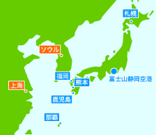 | ソウルより | 約2時間10分 | 熊本より | 約1時間30分 | ||